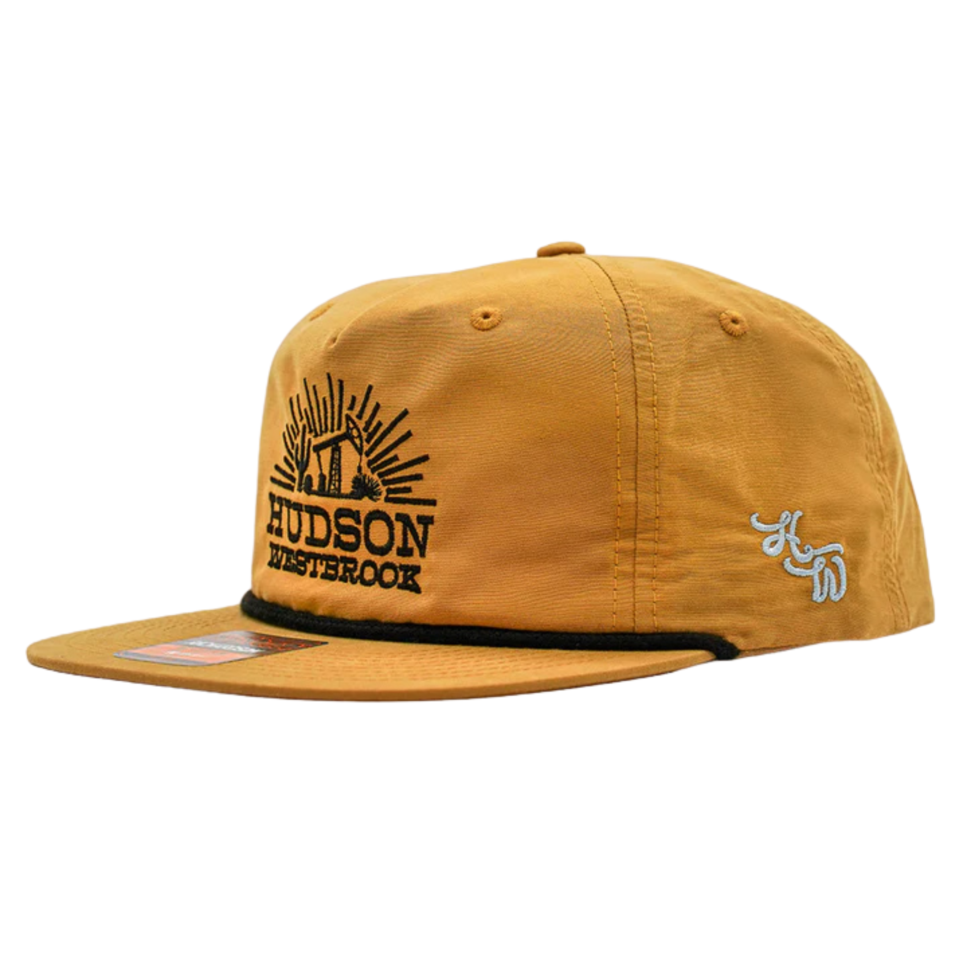 Embrace the West Texas spirit with this Biscuit-colored Richardson 256 Rope Cap, featuring black embroidery. Its 5-panel construction and rope detail offer a unique look.